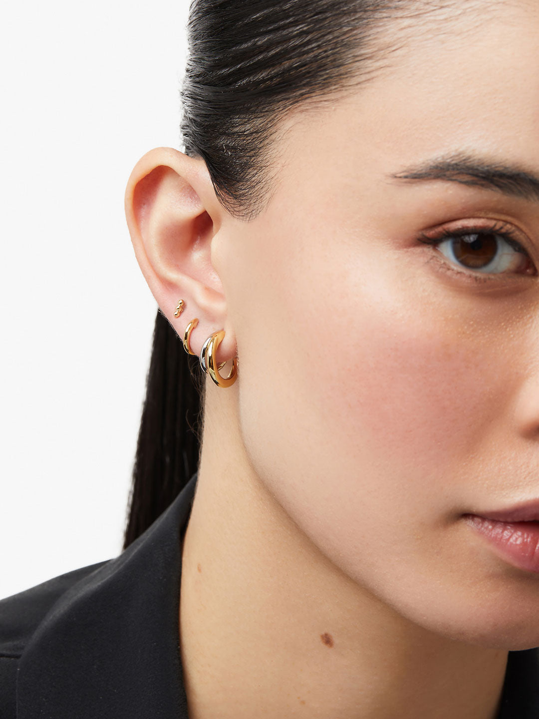 Build the ear-stack of your dreams with our Double Take Bundle. These unparalleled hoop and stud earrings are ready to revamp your wardrobe, featuring mixed metals, trending shapes, and extremely stackable and re-stackable combinations.