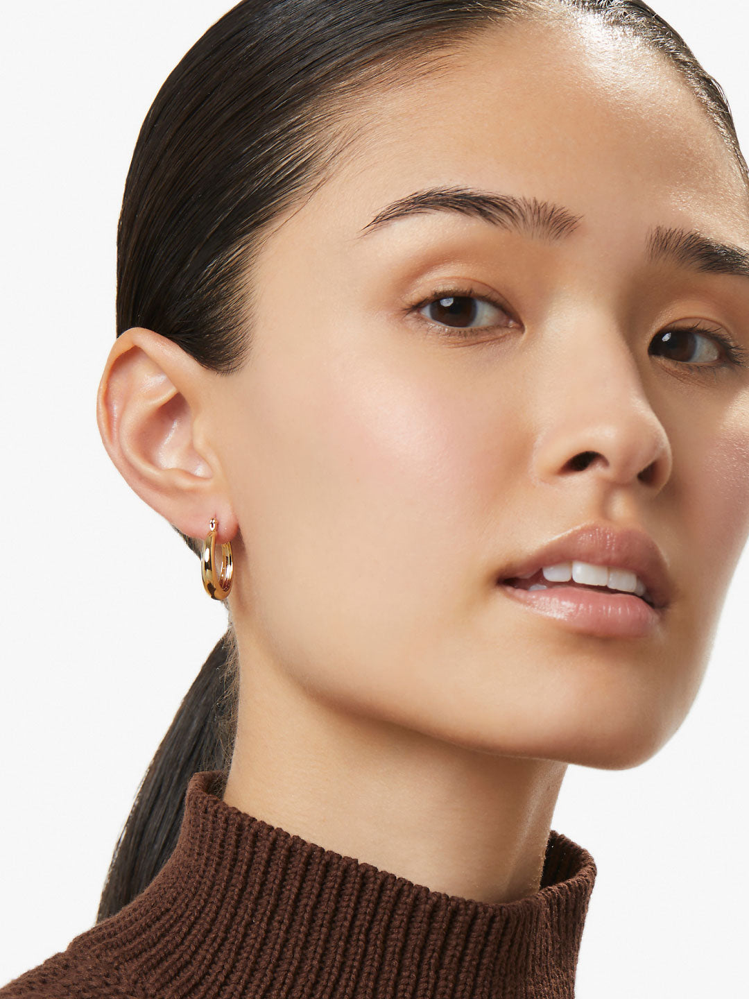 These luscious gold hoops are exactly what you need this season to add a warm and elegant vibe to your outfit. Get festive with these thick gold hoop earrings hanging from your ear and grabbing all the attention as you enter the room. Wear your hair up and match them with a cashmere sweater in a muted color and a deep red lipstick to create a refined & polished look.