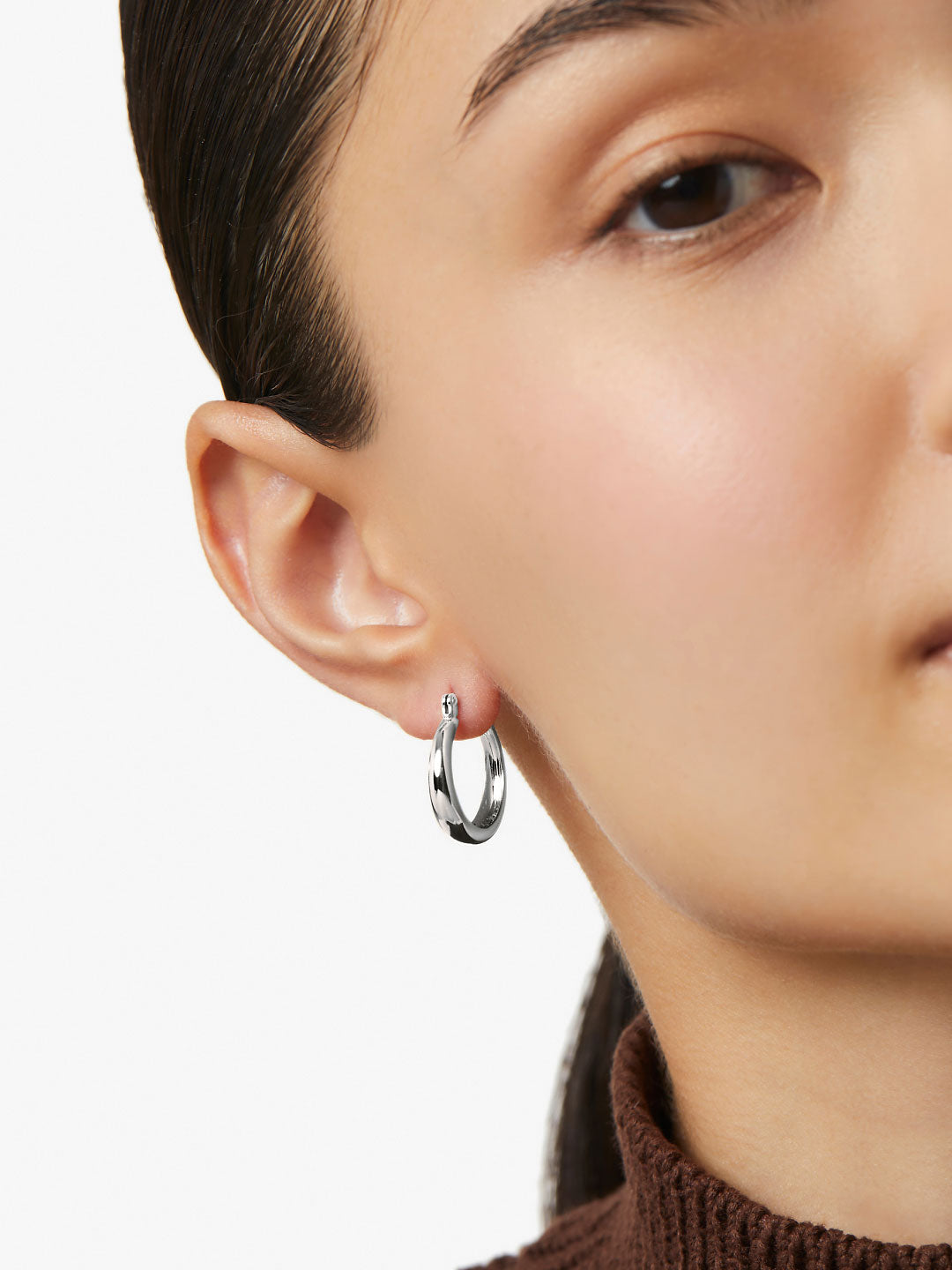 These endless silver hoop earrings are the perfect finishing touch to any look. Simple and classic, this bestselling style is lovely on its own, but also works well when stacked with other earrings. Try pairing these endless silver hoop earrings with our Giulia Silver earrings for a faux triple-piercing look.