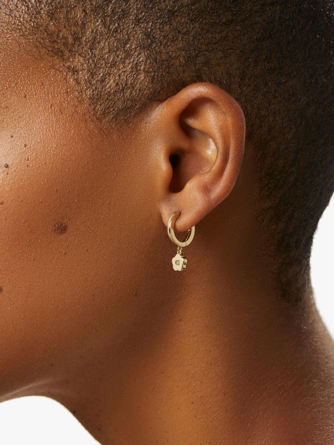 • Flower huggies dipped in 14K gold