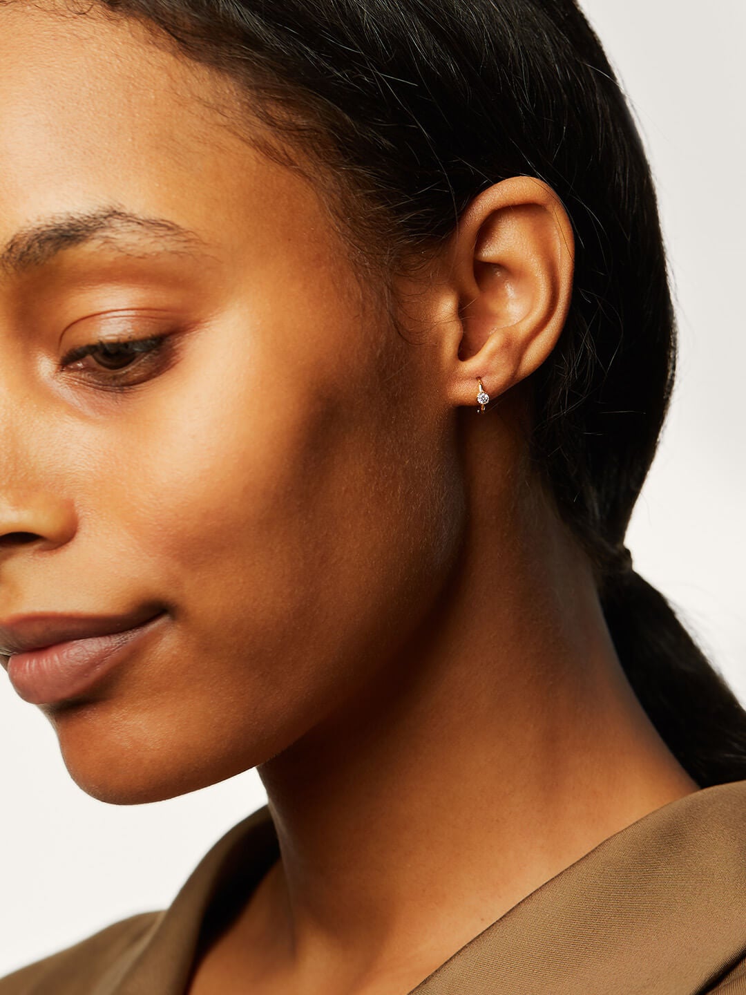 • Gold huggie hoops with a sparkling cubic zirconia gemstone