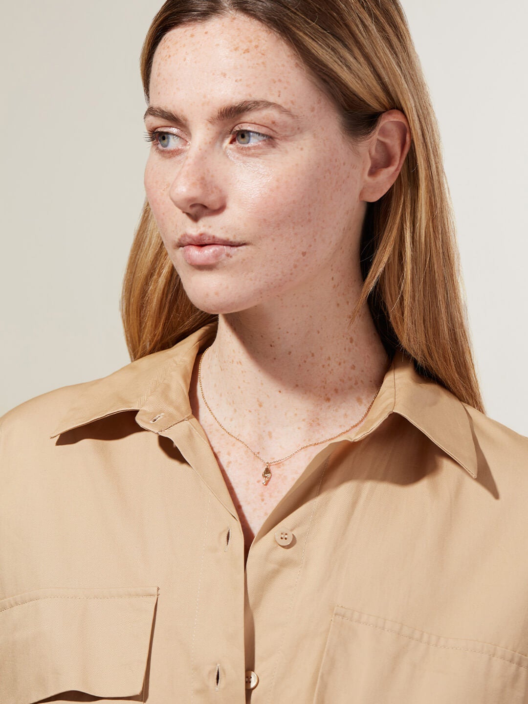 This gold hand necklace designed by Noelle displays a beautifully sculpted hand along with a cubic zirconia stone. A daily reminder to reach for the stars, this hand necklace dipped in 14K gold is a meaningful gift for a friend or a loved one. Wear this amulet gold necklace on its own for a subtle touch or layer it with multiple pendant necklaces for a bolder statement.
