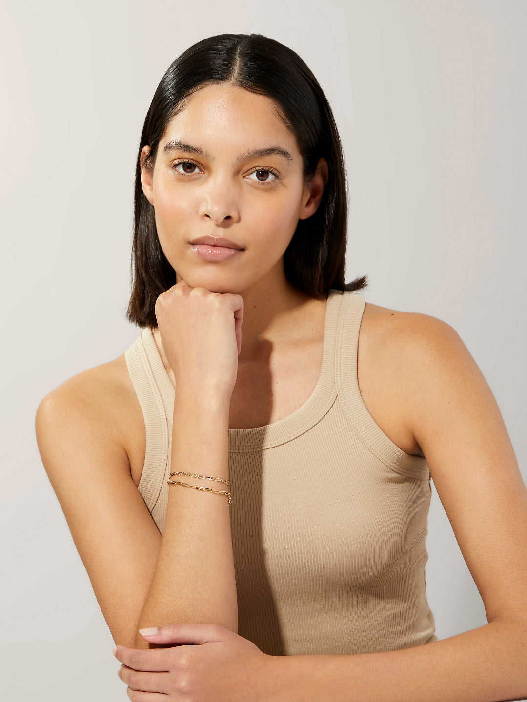 We’ve been starry-eyed for arm candy lately—as if our Bracelet Duo Bundle wasn’t a dead giveaway. This pre-styled set delivers just a minimum amount of main character energy with two delicate 14K gold-dipped bracelets that enhance your everyday outfit. This earring bundle was carefully curated by our talented jewelry designers so you’ll never have to guess if “this goes with that”—they were made for each other. Pair our Bracelet Due Bundle with statement pieces like our Wiley ring or our Mei necklace for a well-rounded look.