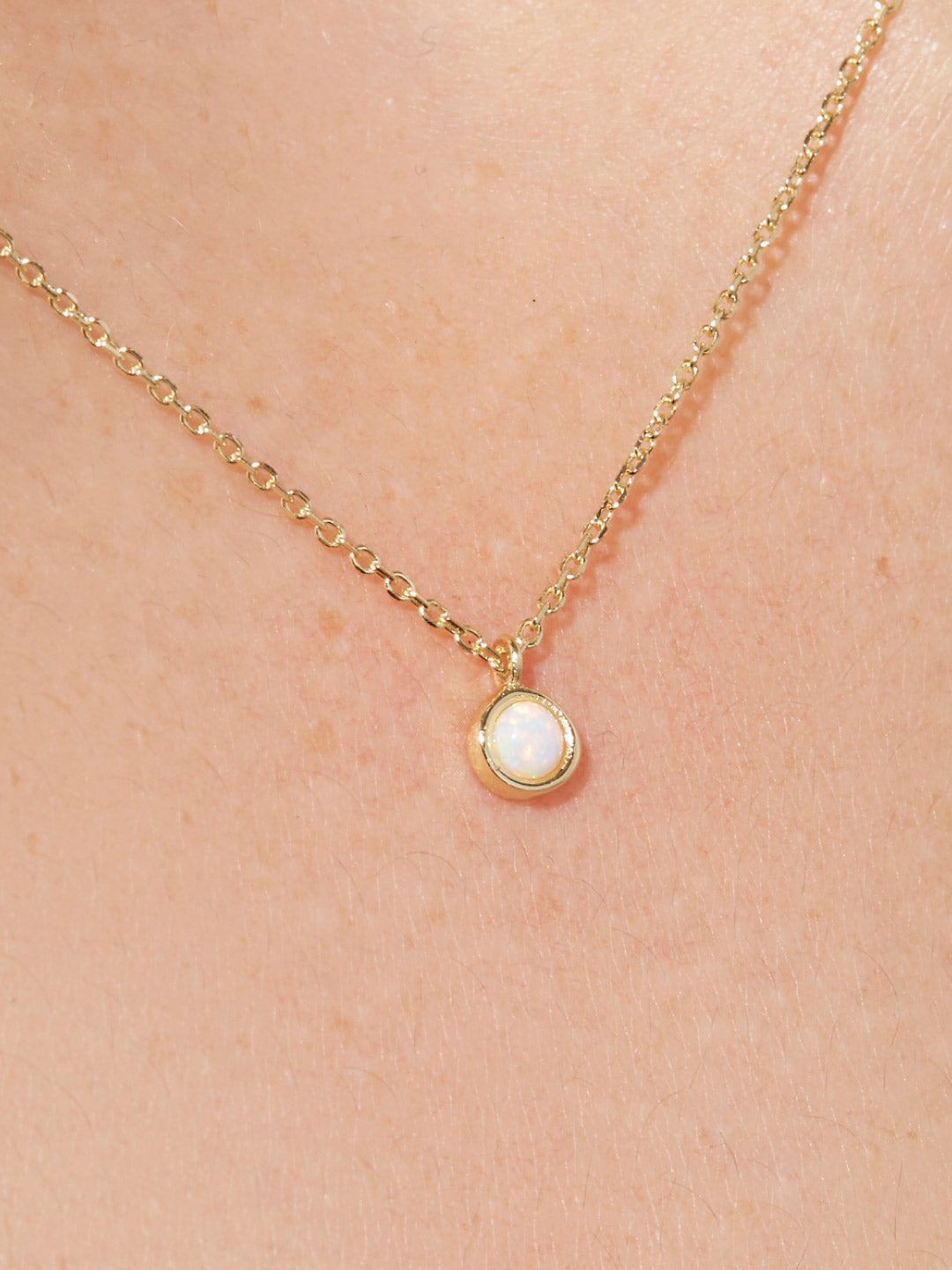 Go from work to play in style with our stunning opal necklace. This gorgeous gold necklace is crafted with a recycled Sterling Silver base and accented with an iridescent opal stone. Wear the opal necklace to add a dash of glamour to your outfit and layer it with more necklaces and create a classic and bold look.