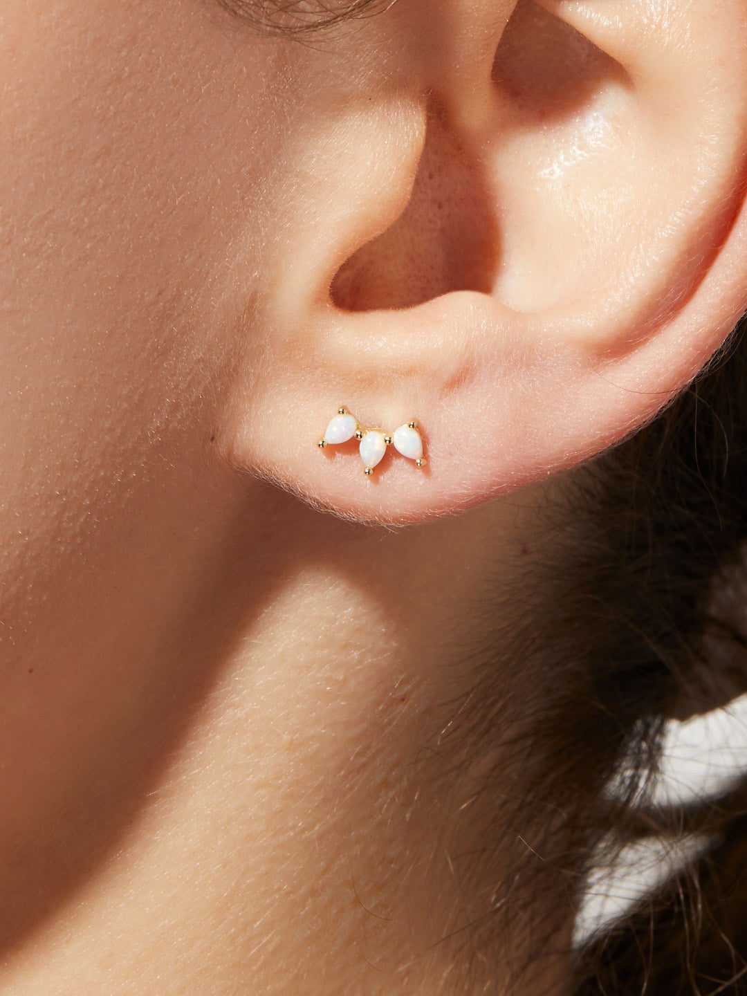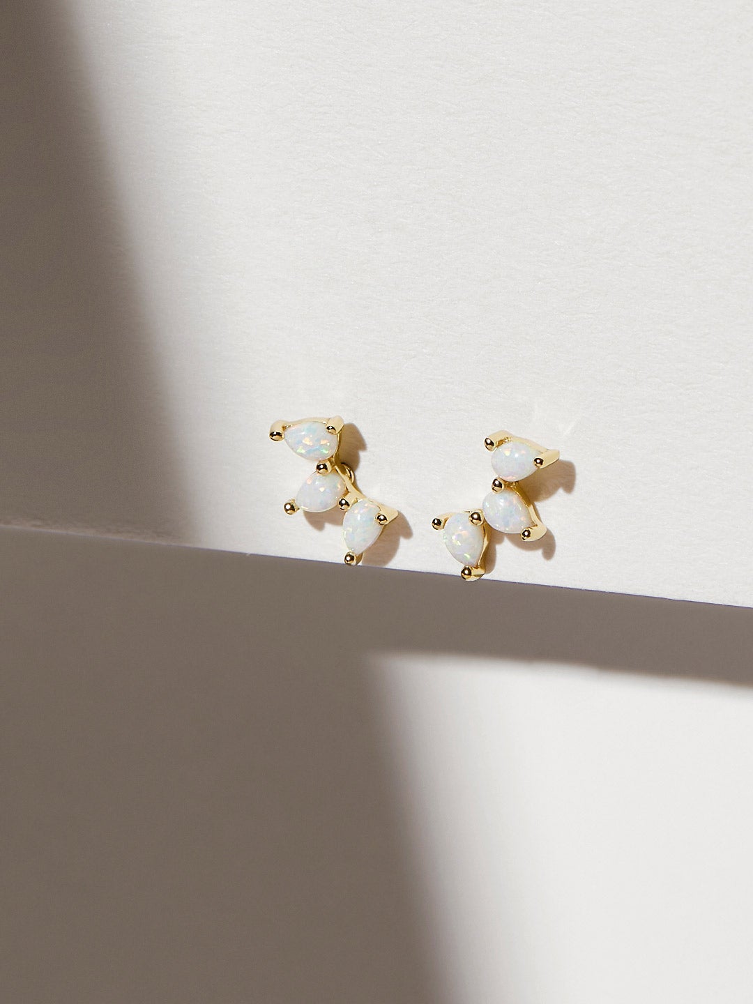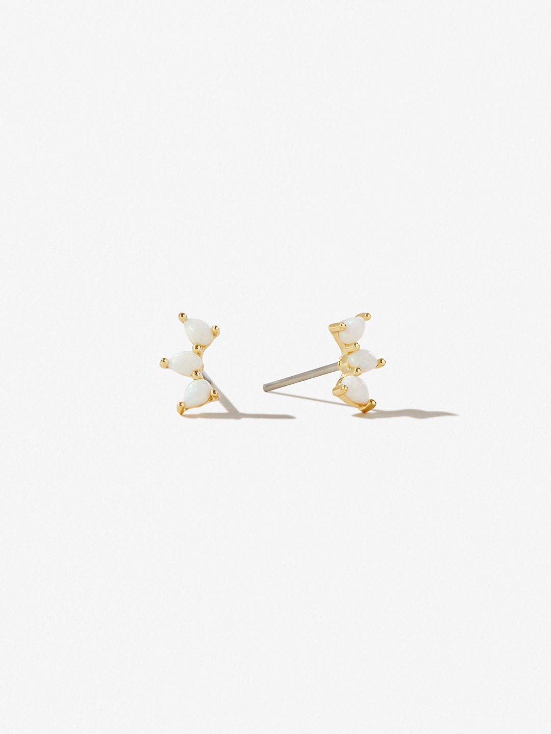 These opal stud earrings with a horizontal row of opal details add a luxe touch to any outfit. Crafted in recycled Sterling Silver and dipped in 14K gold, the opal stud earrings complement your polished style and can be paired with a matching opal necklace to create a glamorous look. Created for everyday wear, these earrings are made with hypoallergenic surgical steel posts.