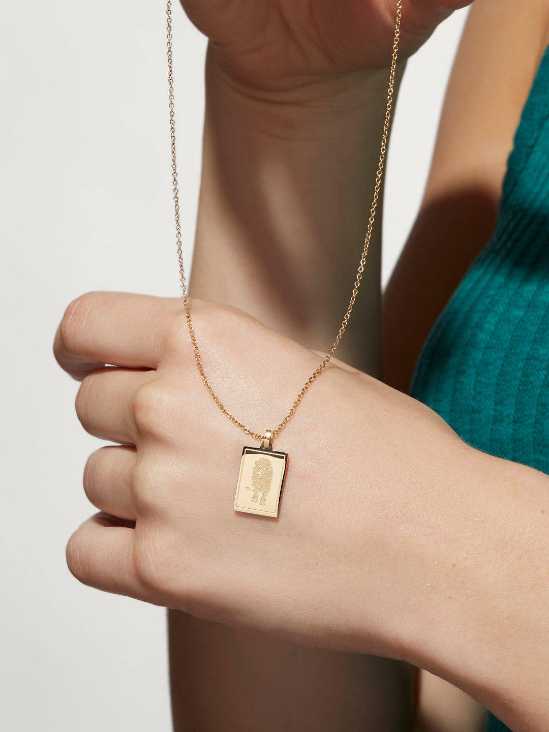 • Features a squared-off Leo pendant
