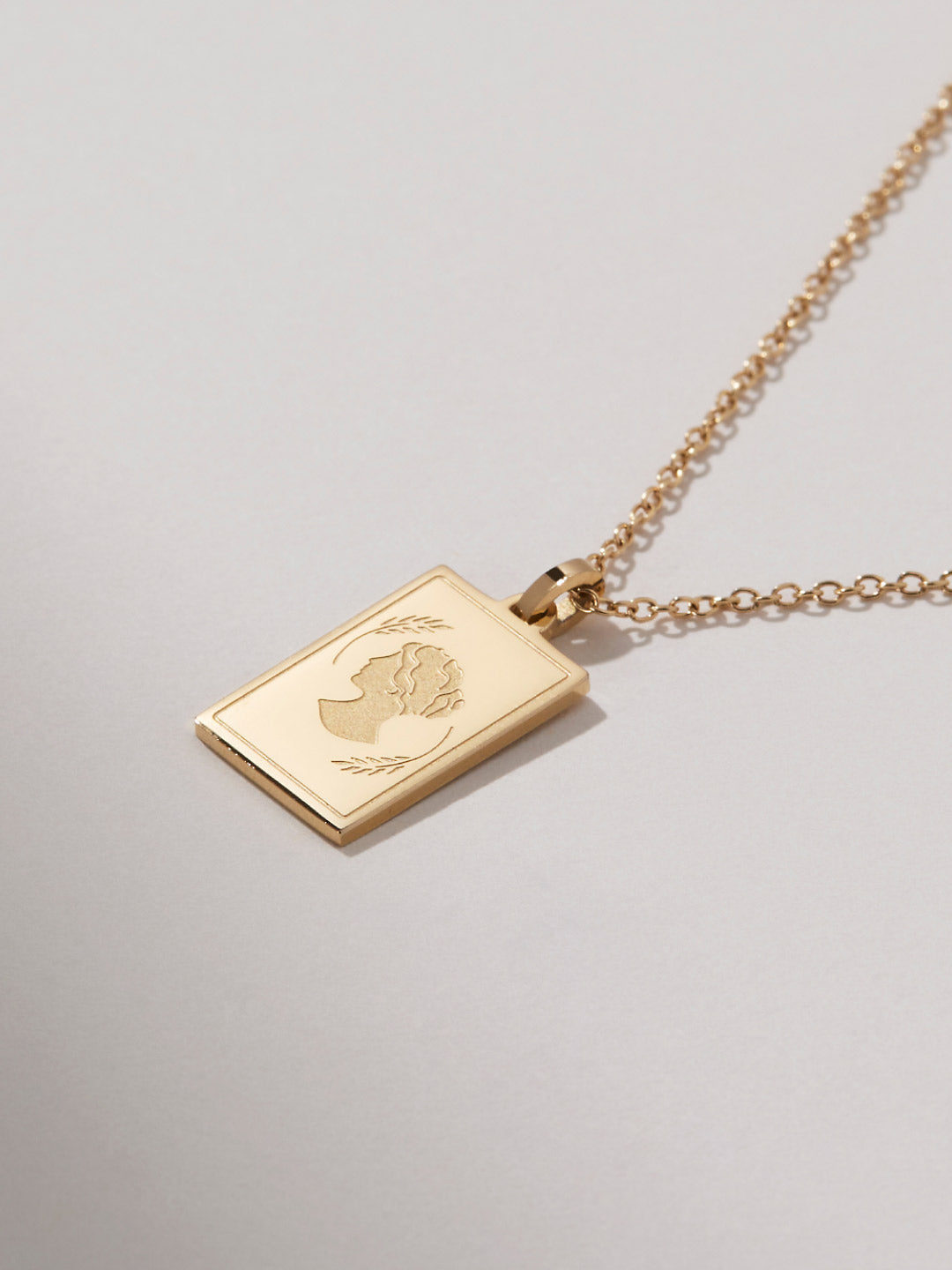 This zodiac necklace dipped in 14K gold is a subtle reminder to the wearer of their starry destiny. A squared-off Virgo pendant dangles from a delicate gold chain. Dipped in 14K gold for a high-polish finish, this dainty zodiac necklace will lend a subtle dose of astrology to any outfit. Pick your star sign or pick a star sign for a loved one to make their birthday even more special.