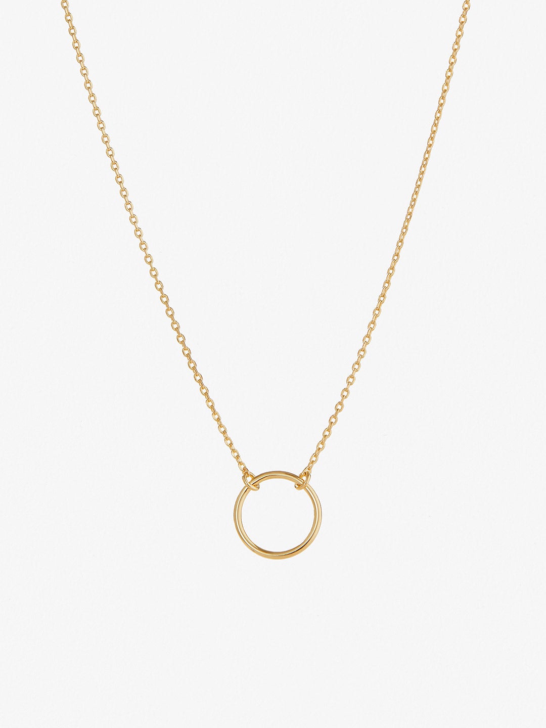 This circle necklace crafted in Sterling Silver and finished in 14K gold is the perfect everyday piece, petite and simple enough to be worn with any outfit. This adjustable necklace has a dainty chain and a polished gold circle in the center that adds geometric glamour to your everyday wardrobe. Also perfect to layer with other delicate pieces you love, this circle necklace is a must-have staple.
