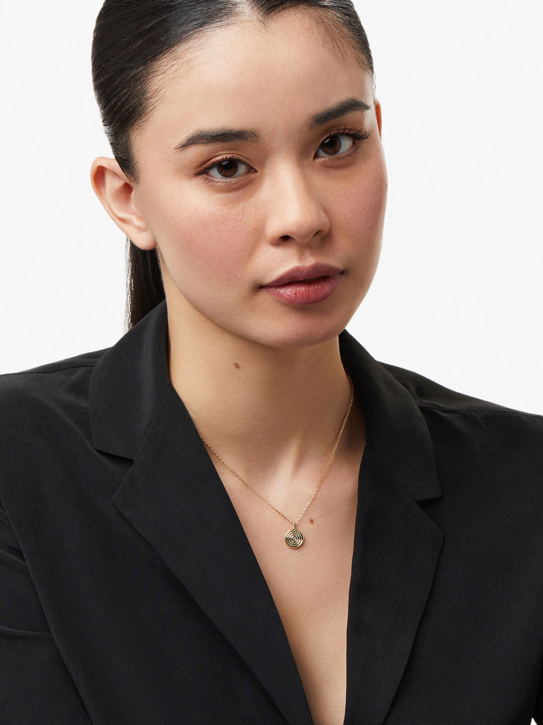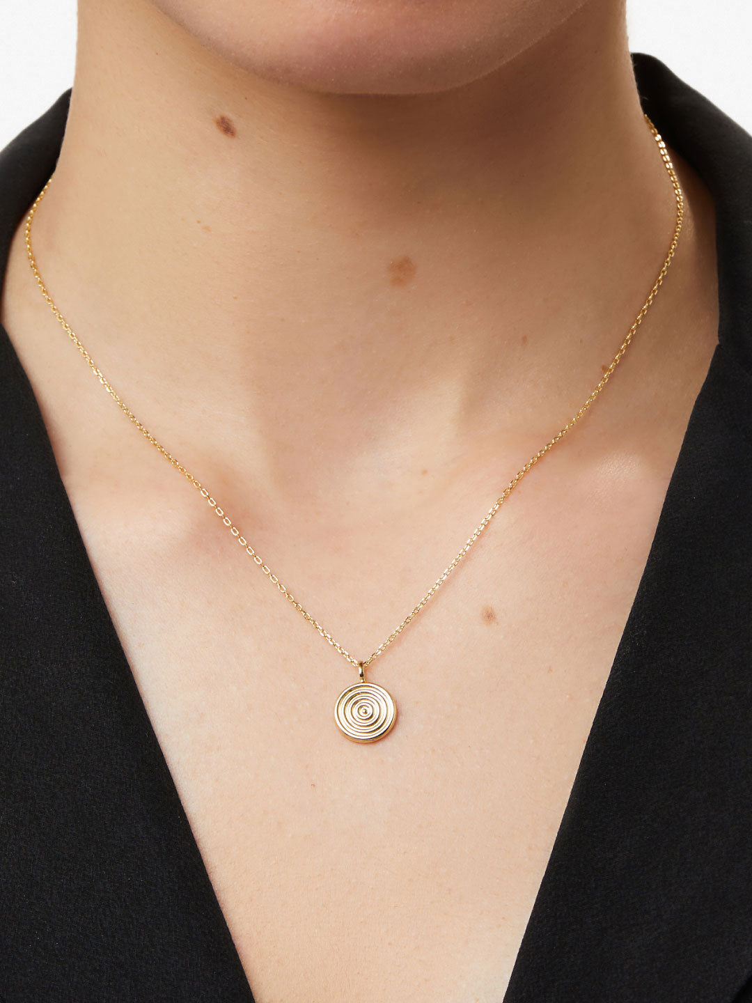 This gold circle pendant necklace is here to make a statement. Made with 14k gold on recycled sterling silver, this is necklace is begging to make it to your jewelry collection. Whether you style this circle pendant necklace with a vintage or modern look, it pairs perfectly with our similarly textured Lea ring.