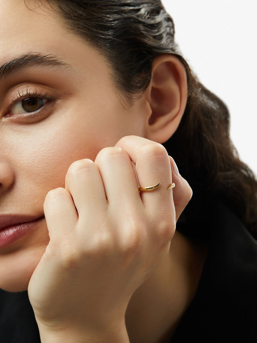 Minimal yet fun, this claw ring is dipped in 14k gold and is the perfect piece to add to your statement stack. Its wrap-around silhouette adds a dainty and unique touch. Pair it with our Drew bracelet for some added dimension.