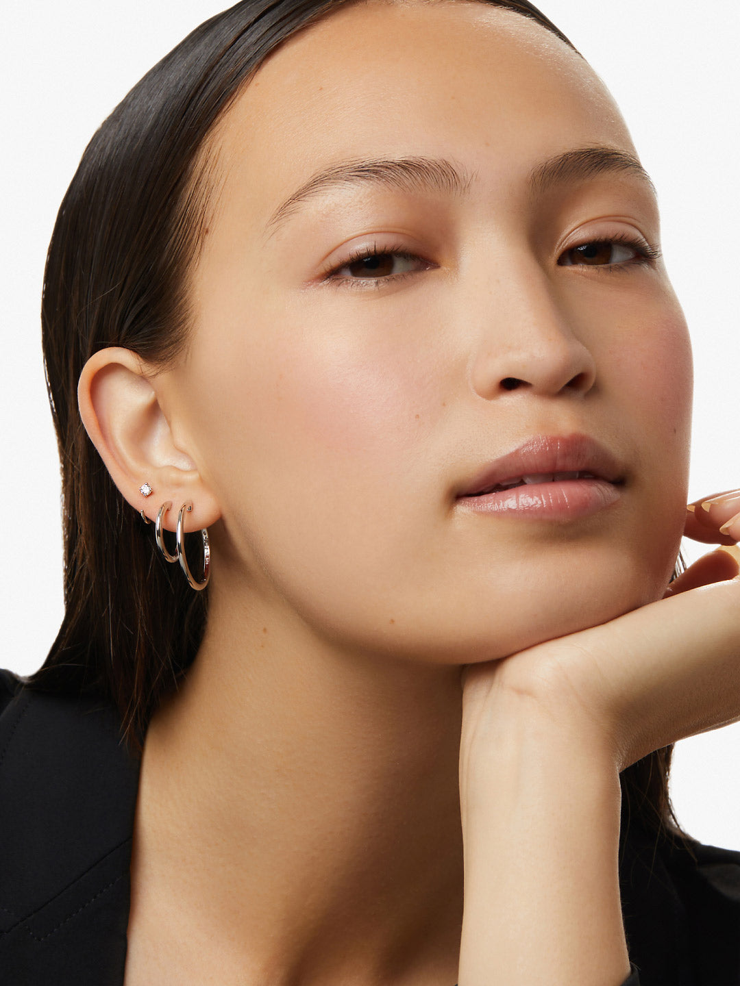 Why settle for one pair of earrings when you can have three? Our Silver Classic Hoop Bundle combines three of our bestselling hoops that just work perfectly together. Crafted in 100% recycled sterling silver with a rhodium finish, each pair serves a unique purpose so you’ll never have to guess “if this goes with that.” Wear them together or separately on a girl’s night out, a workday, a hot date — this bundle has something for every version of you.