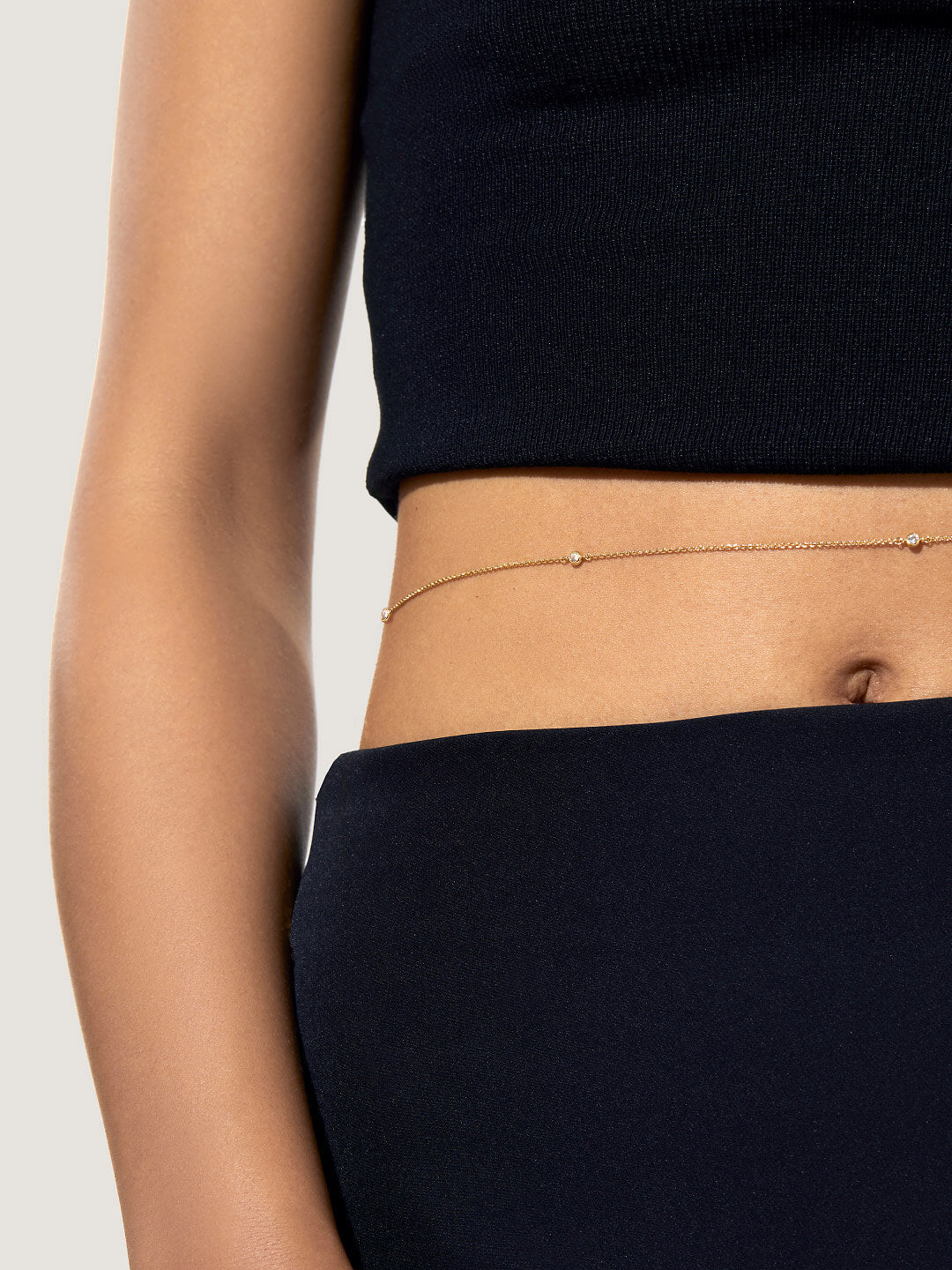 We designed this belly chain for all of your seasonal fits, flings, and festivals. This 14K gold-dipped, cubic zirconia-adorned chain effortlessly drapes along your waist to enhance your figure along with your everyday outfit. If you’re looking for more sparkle, pair this belly chain with our Laurena bracelet.