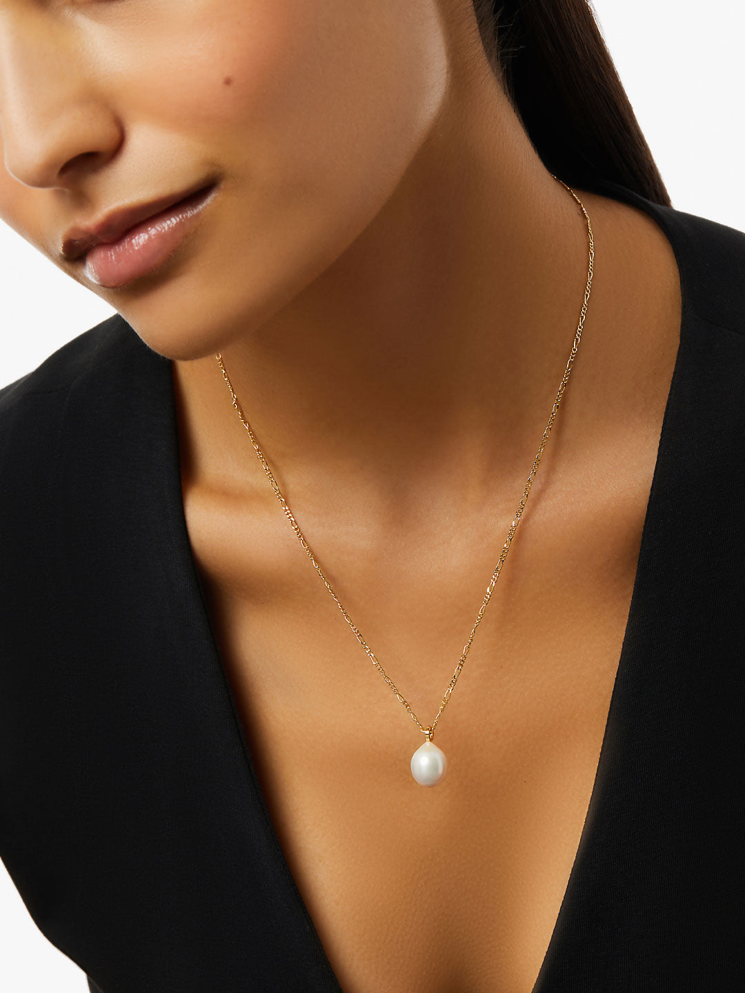Be dainty and bold with this pearl pendant necklace. A freshwater pearl hanging from a gold-dipped chain, this pendant necklace sets the tone for any elegant evening. Style it with our pearl stud earrings for a timeless and chic ensemble.