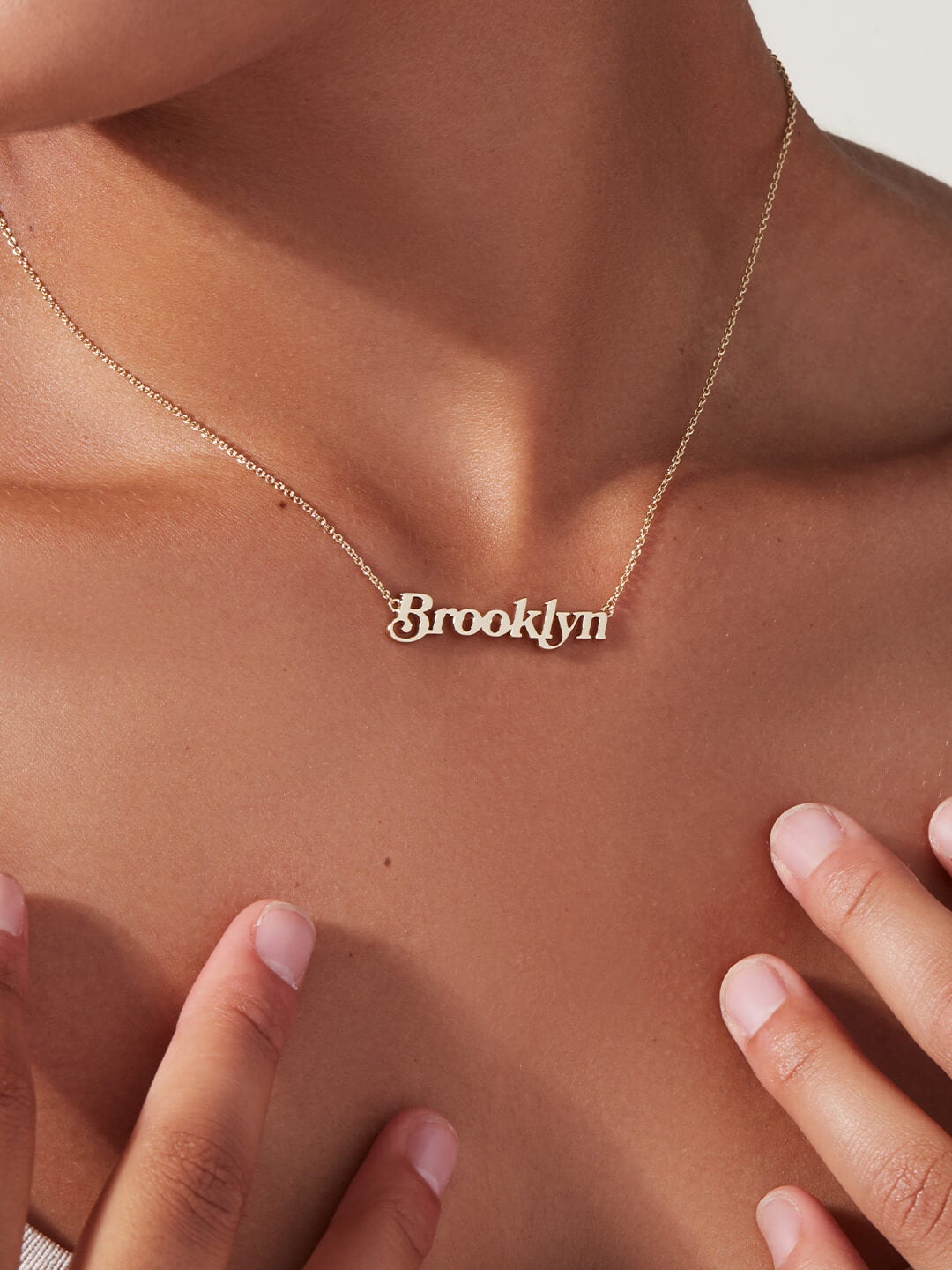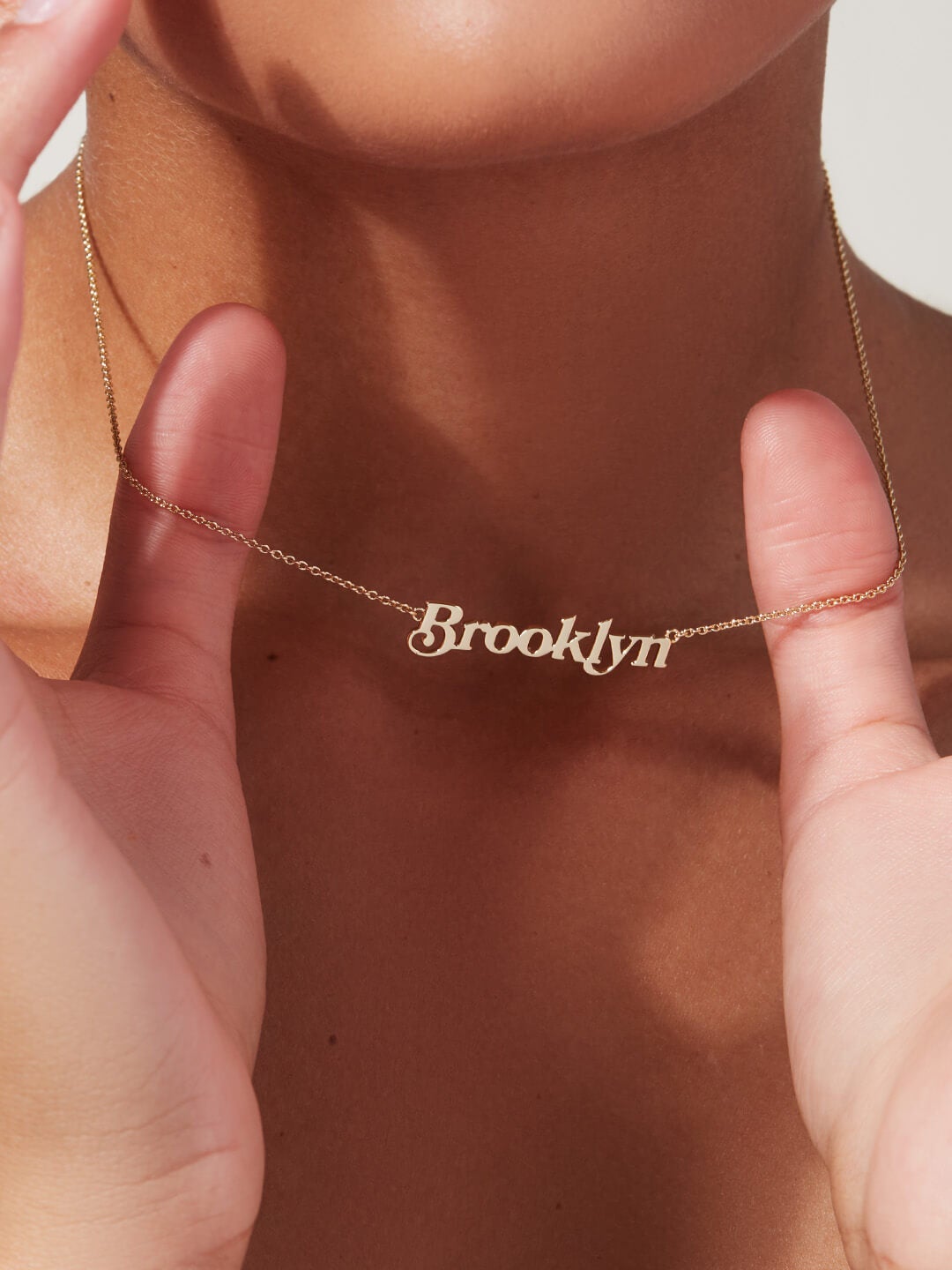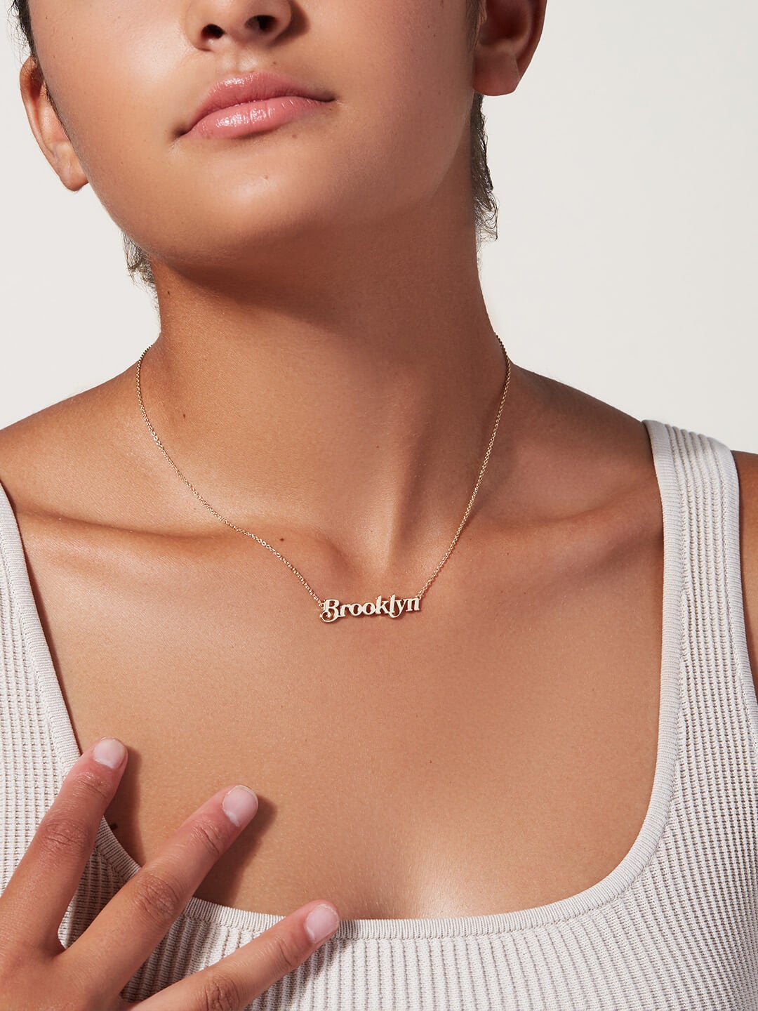Discover the Ana Luisa Dictionary, a new collection of iconic nameplate necklaces. Pick your favorite mantra and wear your inspirational necklace daily. If you can’t live without the Brooklyn Bridge, this stylish nameplate necklace with a gold pendant that reads “Brooklyn” is your next favorite jewelry piece. With a high-polish finishing and dipped in 14K gold, this gorgeous necklace is the perfect addition to your necklace stack.