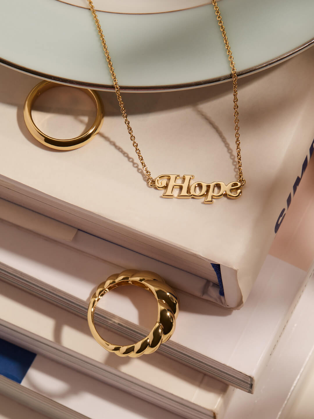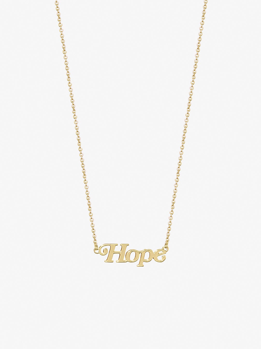Discover the Ana Luisa Dictionary, a new collection of iconic nameplate necklaces. Pick your favorite mantra and wear your inspirational necklace daily. Add a polished touch to your neckline with our “Hope” necklace. Dipped in 14K gold and designed with a high-polish finishing, this gold pendant necklace is meant to be worn every day alone or layered with other necklaces.
