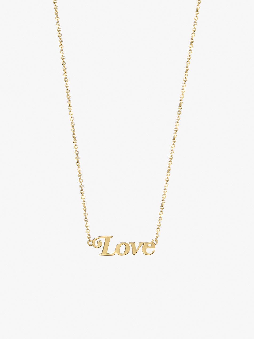 Discover the Ana Luisa Dictionary, a new collection of iconic nameplate necklaces. Pick your favorite mantra and wear your inspirational necklace on the daily. Dainty and dipped in 14K gold, the “Love” necklace is perfect to wear alone or layered with other gold chains. Show yourself some love and get this classic nameplate necklace!