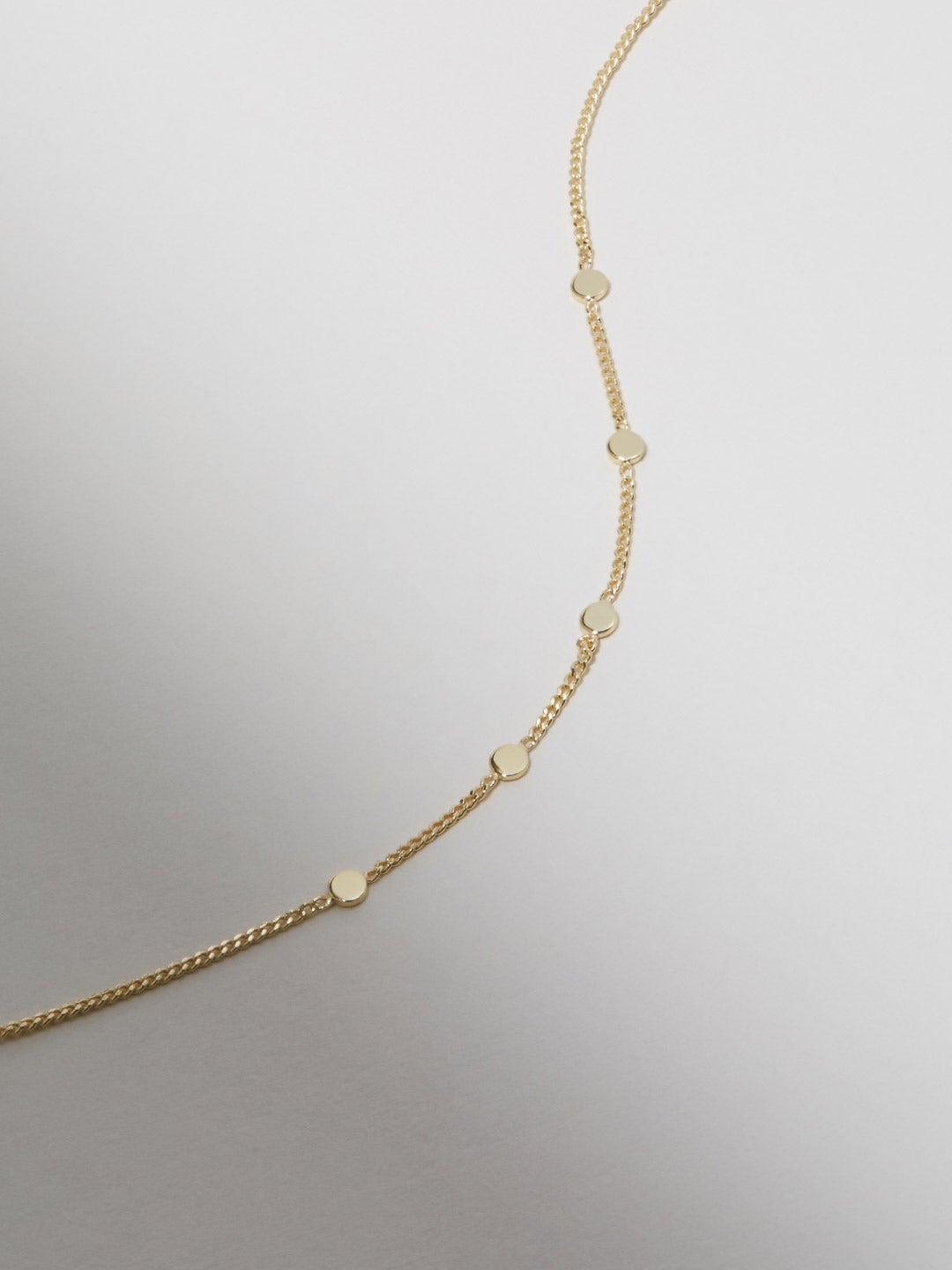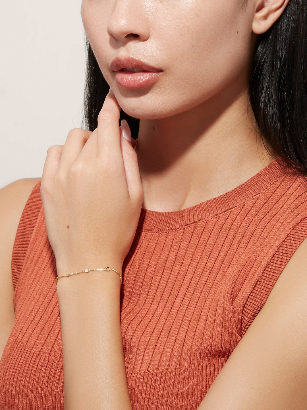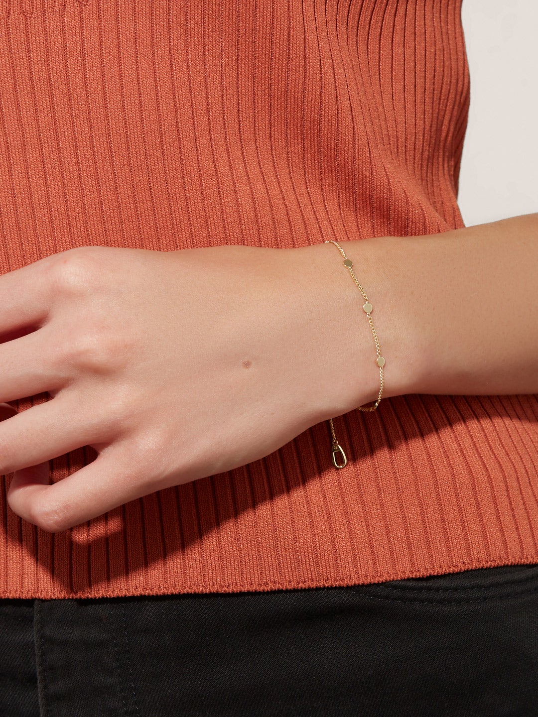 The gold circles bracelet is the perfect jewelry staple to accent your everyday style. Crafted in Sterling Silver and dipped in 14K gold, this dainty box chain bracelet features small golden polished circles. Whether you're wearing it solo or stacking with other bracelets, this gold circles bracelet is a timeless piece for your jewelry collection.