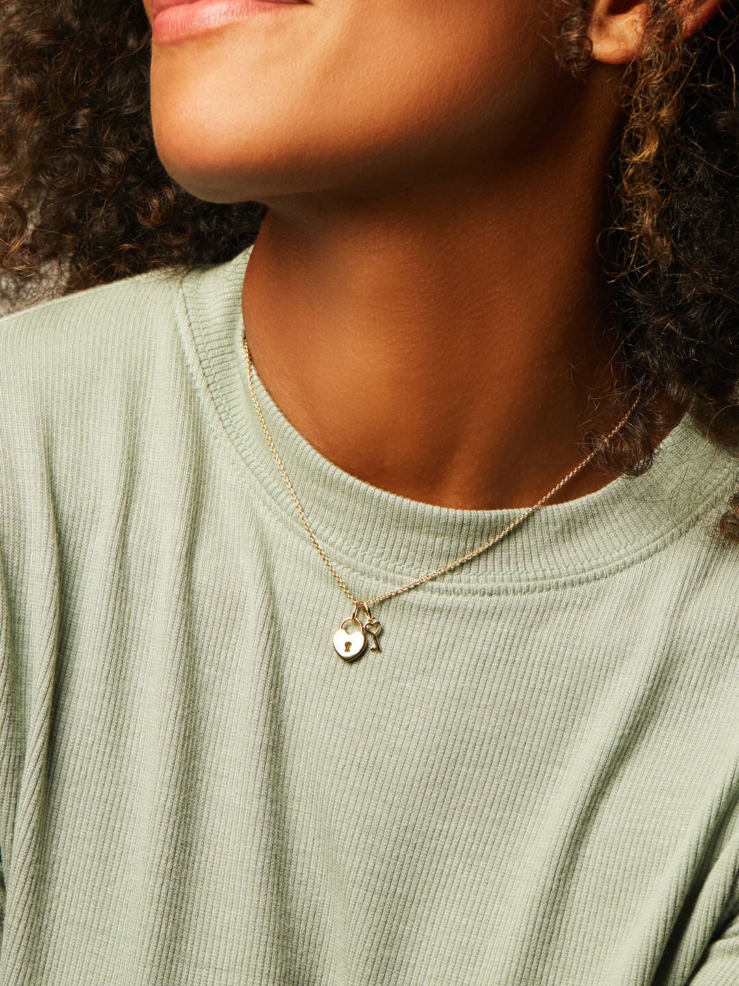 Hold the key to your heart close with this heart lock necklace combining two romantic charms on a gold chain, and co-designed with Joy. Each sale gives back to the Korea Cyber Sexual Violence Response Center. With a classic link chain, a gorgeous pendant and a shimmering cubic zirconia gem this adorable heart lock necklace is a must-have. Looks fabulous with blouses and dresses with V-necklines.