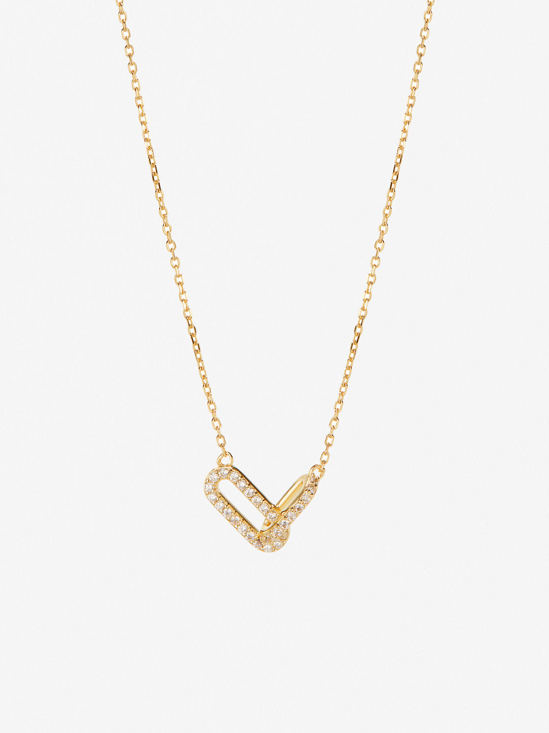 This timeless chain link necklace is sure to become a go-to jewelry staple when you want to add a touch of glam to your look. Crafted in recycled Sterling Silver and dipped in 14K gold, the centerpiece features two interconnected ovals dotted with pave-set cubic zirconia. This chain link necklace is an everyday piece you'll want to take from day to night. Pair them with the chain link earrings for the perfect sparkling look.